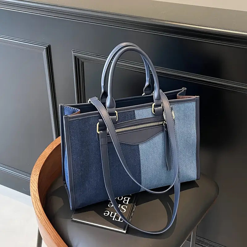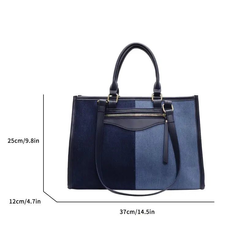 Casual Tote Tas voor Vrouwen – Meerblauwe Schoudertas met Ritssluiting en Vaste Band – Stijlvol en Stevig voor Dagelijks Gebruik