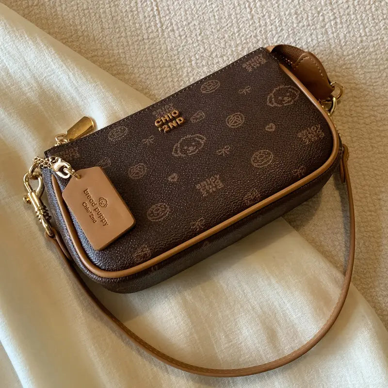 Glamorieuze Koffiebruine Dames Schoudertas met teddybeerprint – Europese & Amerikaanse Stijl