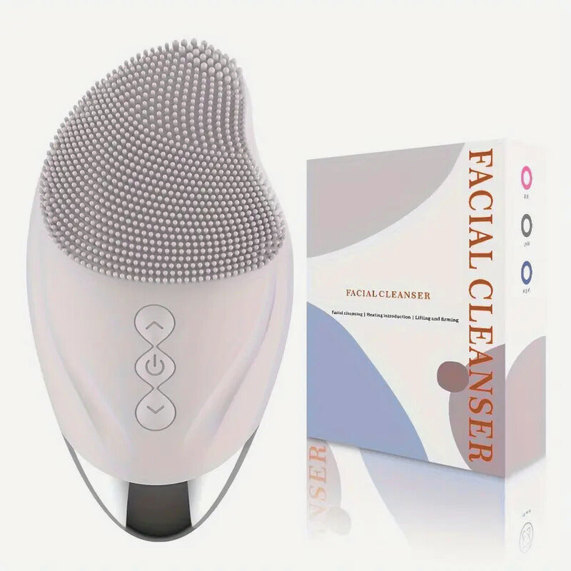Oplaadbare Siliconen Gezichtsreinigingsborstel met Verwarmende Massage – Zachte Exfoliatie & Diepe Reiniging