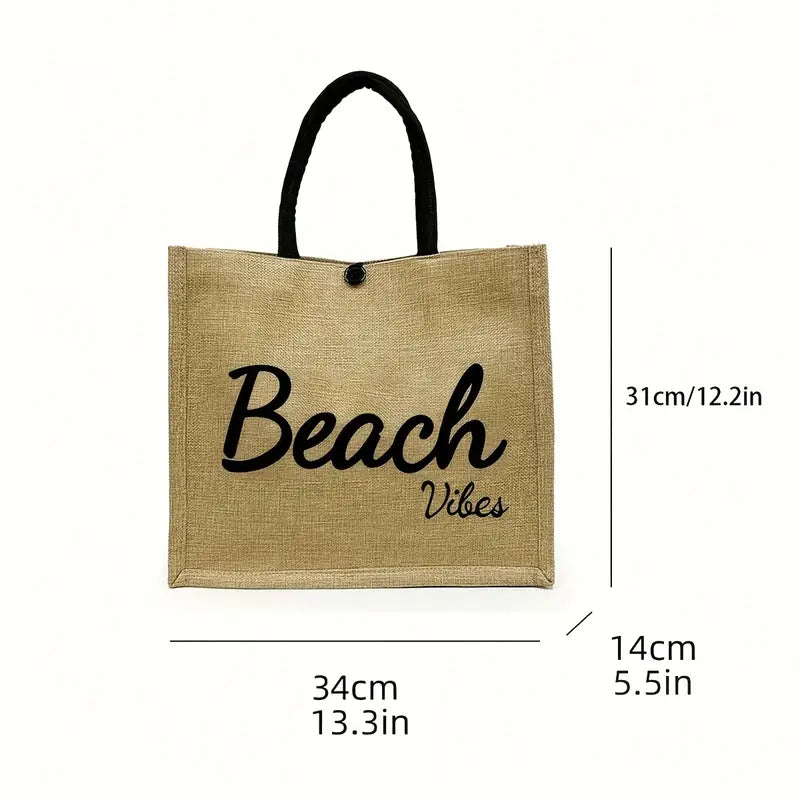 Ga stijlvol en goed georganiseerd naar het strand, een buitenbruiloft of je volgende vakantie met deze veelzijdige en trendy strandtas. Deze ruime, vierkante tas in een elegante khaki kleur is gemaakt van duurzame polyestervezel en heeft een modieuze 'strandgevoel'-print die direct zomerse vibes oproept.
