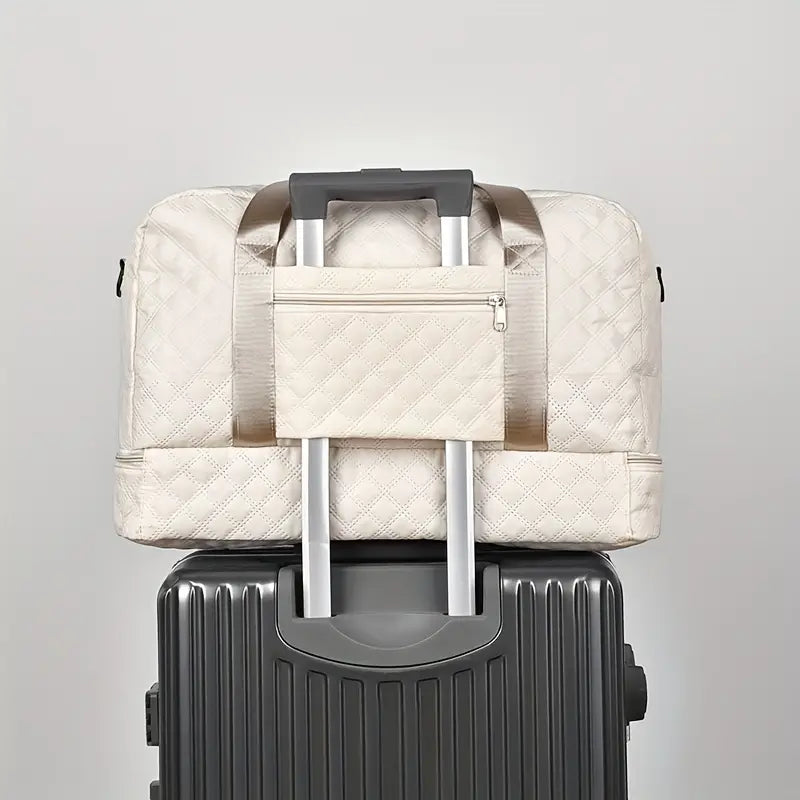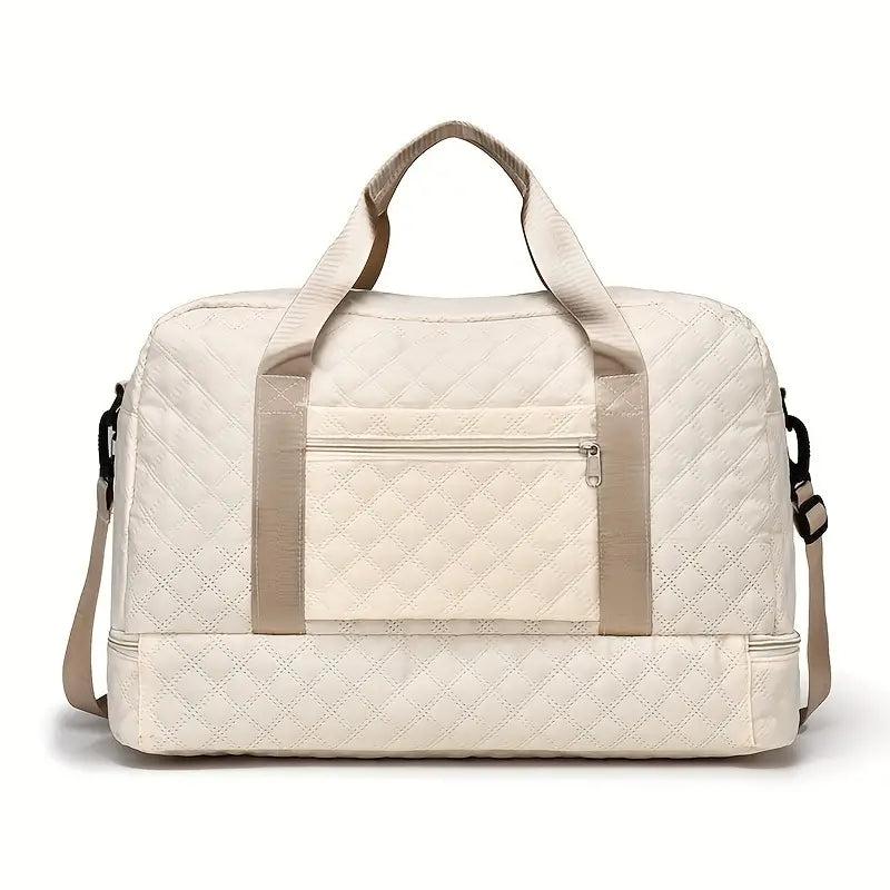 Dames Reistas - Gymtas – Grote Capaciteit Reistas met Schoenenvak en Gequilt Design – Lichtgewicht, Duurzaam en Stijlvol – Wit/Creme